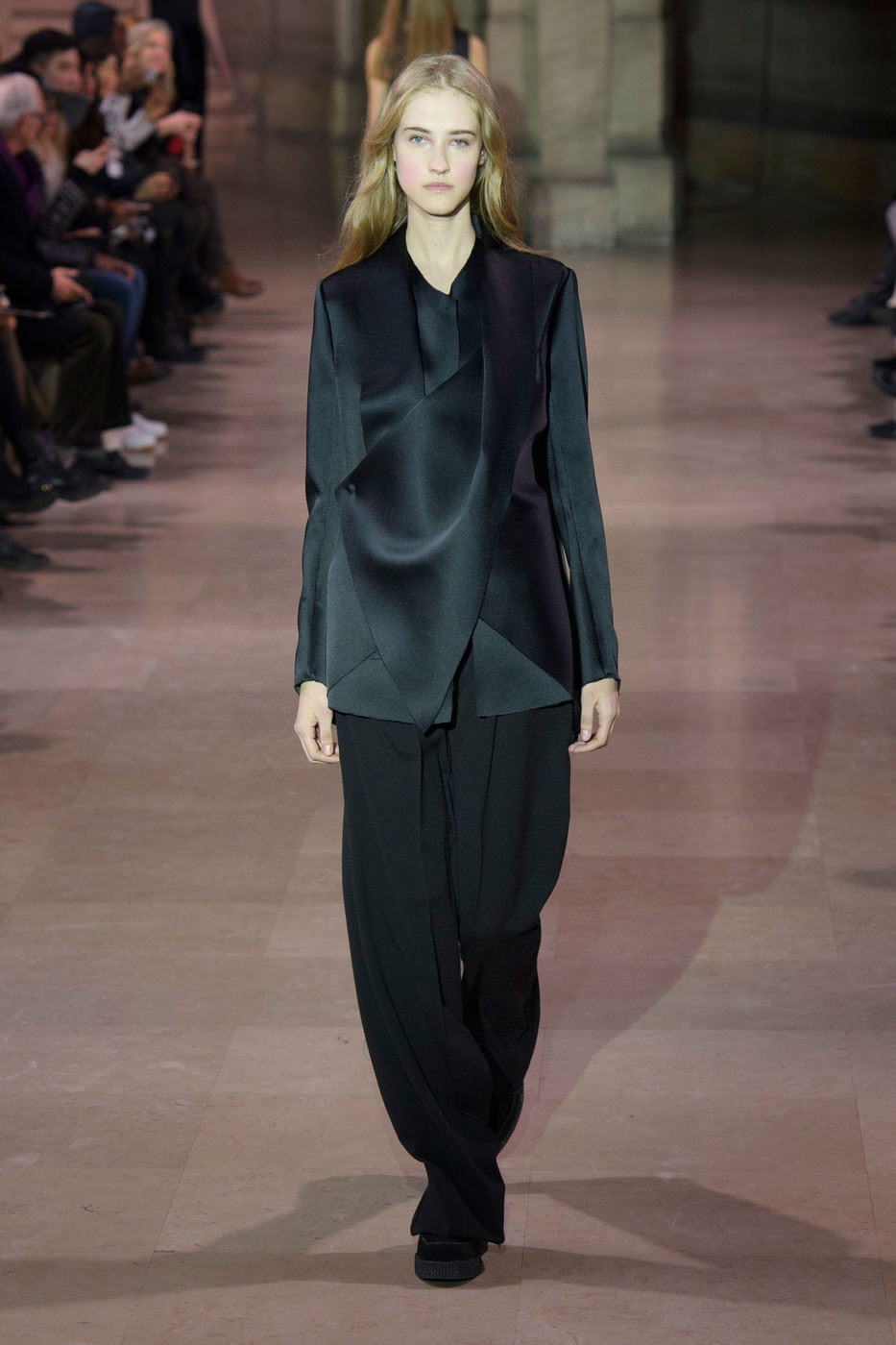 Если бы мы выбирали характеристику для этого сезона, то абсолютно точно остановились бы на выражении “внимание на талию”. Помимо укороченных моделей, которые мы только что обсудили, огромную часть новинок представляют зауженные осенние женские пиджаки 2016. Это вещи длиной до середины бедра с четко выраженной талией (Paul Costelloe, Boss Women, Brandon Maxwell). Взгляд также фокусируется на крупных деталях (Sophie Theallet).